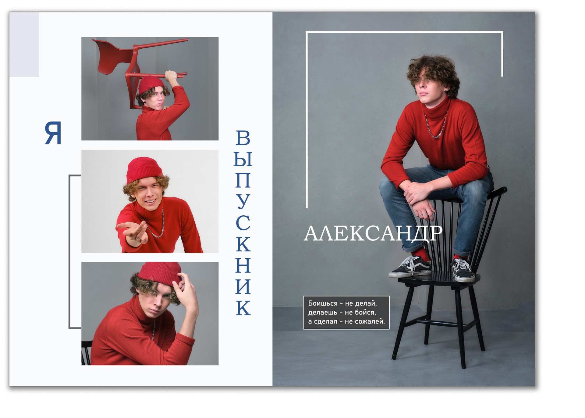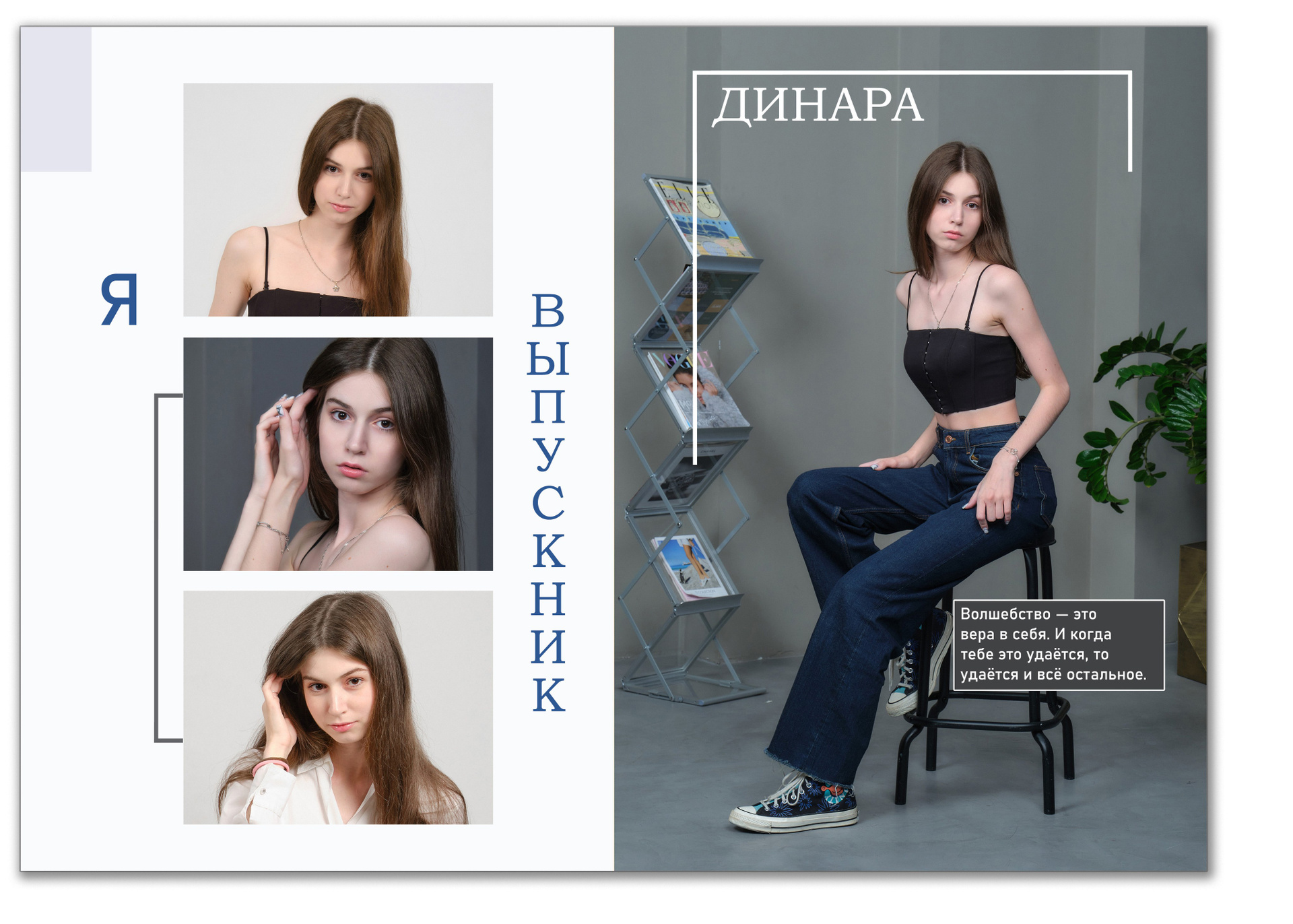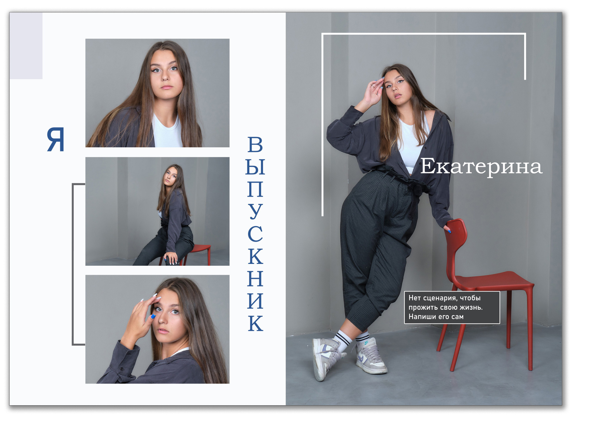 - для каждого выпускника один разворот с четырьмя портретами и цитатой, один из портретов совпадает с портретом на обложке.
