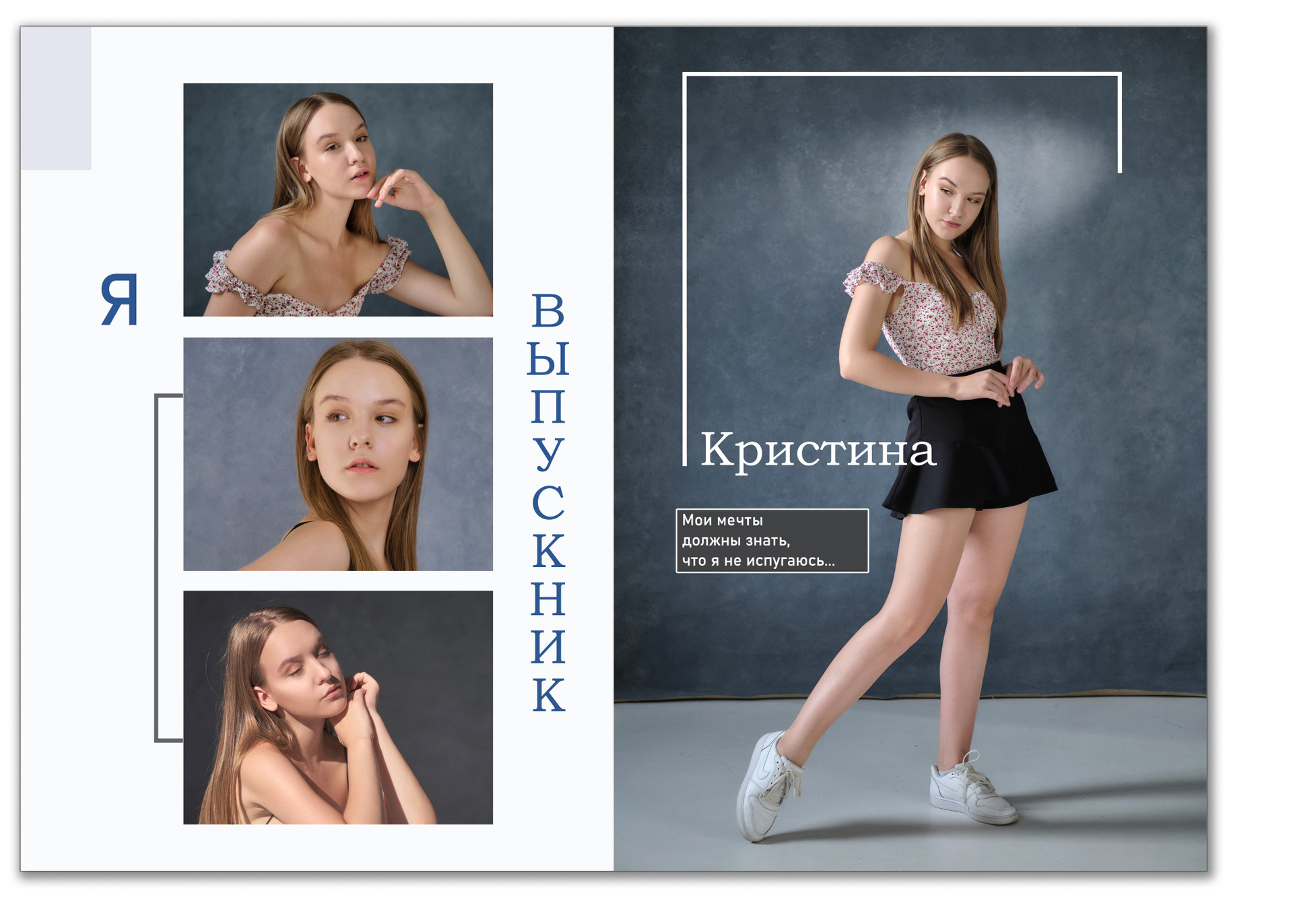 - обложка с портретом выпускника, есть возможность выбора обложки из готовых вариантов
