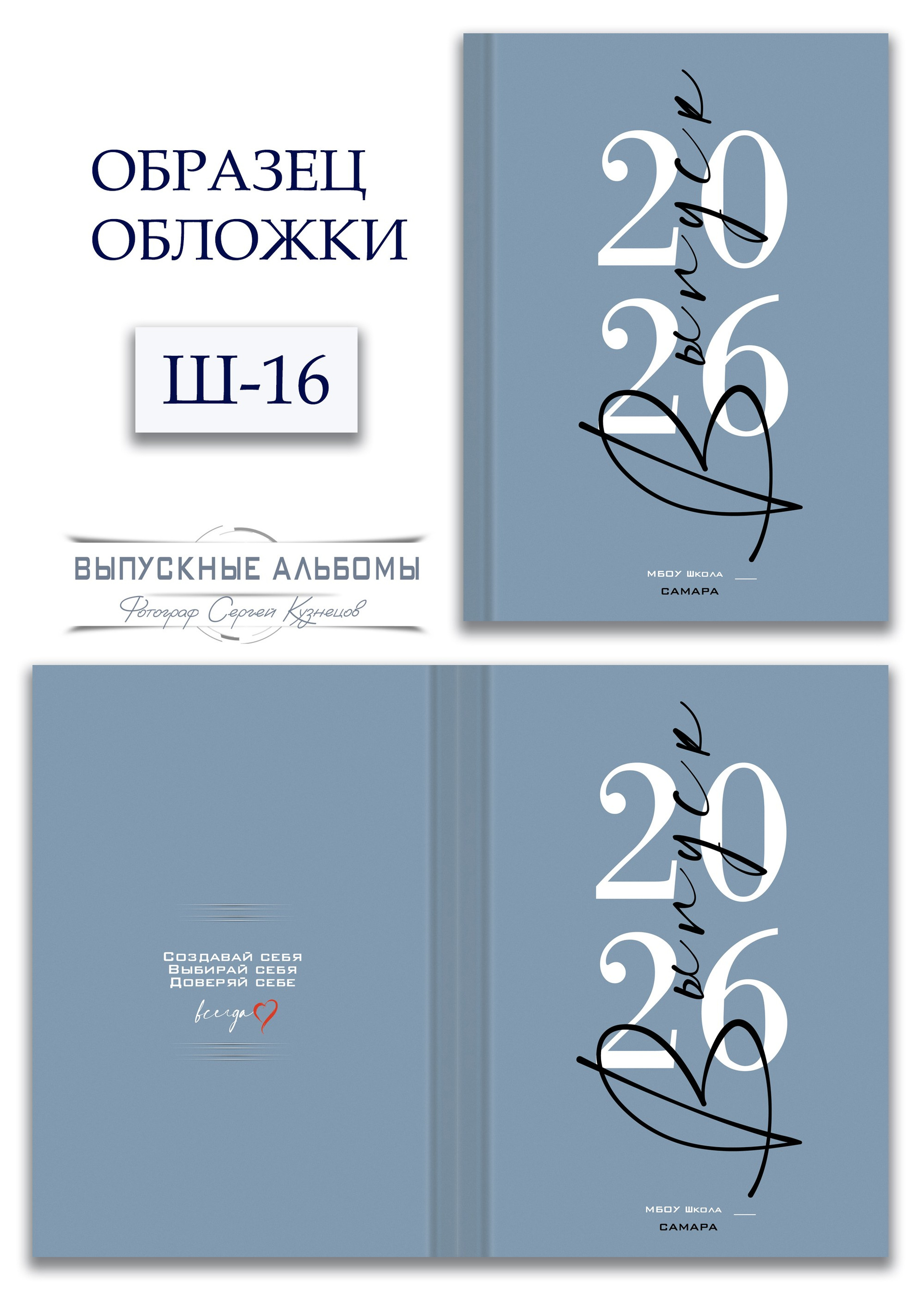 При заказе альбома можно выбрать один из предлагаемых вариантов или заказать индивидуальный дизайн.